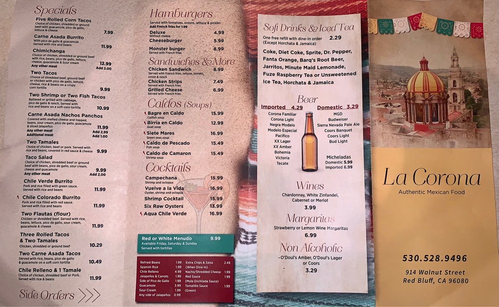 La Corona Mexican Restaurant is a must-visit spot in Red Bluff, CA, offering a wide range of Mexican cuisine with a focus on quality and authenticity. With the convenience of taking reservations, offering takeout and delivery, and providing many vegetarian options, this restaurant ensures that everyone can enjoy a delicious meal. Their casual atmosphere, attentive waiter service, and spacious outdoor seating make it a perfect choice for dining with friends or family. The menu features a variety of traditional Mexican dishes, including savory tacos, flavorful enchiladas, and refreshing margaritas. With the option for catering and private lot parking available, La Corona Mexican Restaurant is a convenient and delightful dining experience that truly captures the essence of Mexican cuisine.